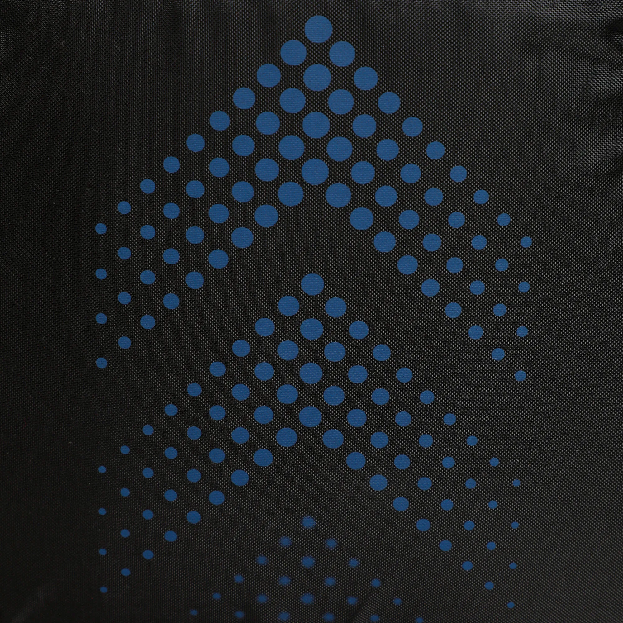 Due compartimenti. Spallacci comodi. Un compartimento per le racchette. Un compartimento frontale più piccolo per gli oggetti con chiusura a zip. Due tasche esterne laterali in mesh per bottiglie d’acqua o palline.
